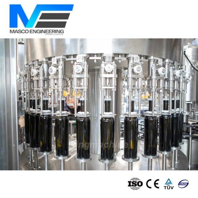 The machine is special used in wine production . The three functions of bottle rinsing, filling and capping are composed in one body of the machine. The whole process is automatic. The machine is used in bottles made of glass. It is convenient to operate with higher automation .