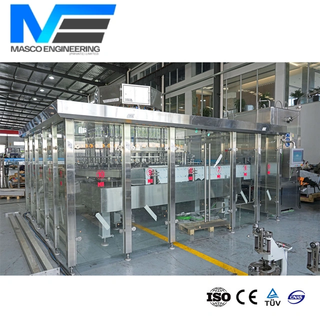 Carbonated drink 3-in-1 filling machine is also well suited for your production line. The three functions of bottle rinsing, filling and capping are composed in one body of the machine. The machine is used in filling carbonated beverage in bottles made of polyester and
